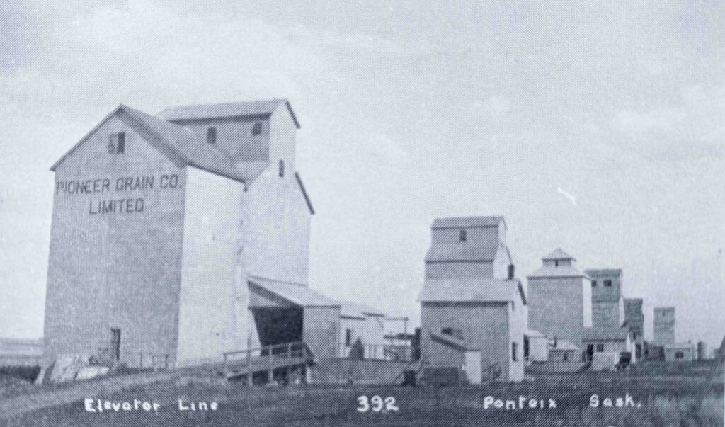 Les élévateurs à grain jouèrent un grand rôle dans le développement de Ponteix. Fut un temps où Ponteix comptait six élévateurs à grain qui longeaient la voie ferrée du village. La construction du premier élévateur débuta en 1913 par la compagnie Pioneer avec une capacité de 22,000 boisseaux qui fut portée à 45,000 boisseaux en 1924. La fermeture définitive de ce premier élévateur eut lieu en 1973.